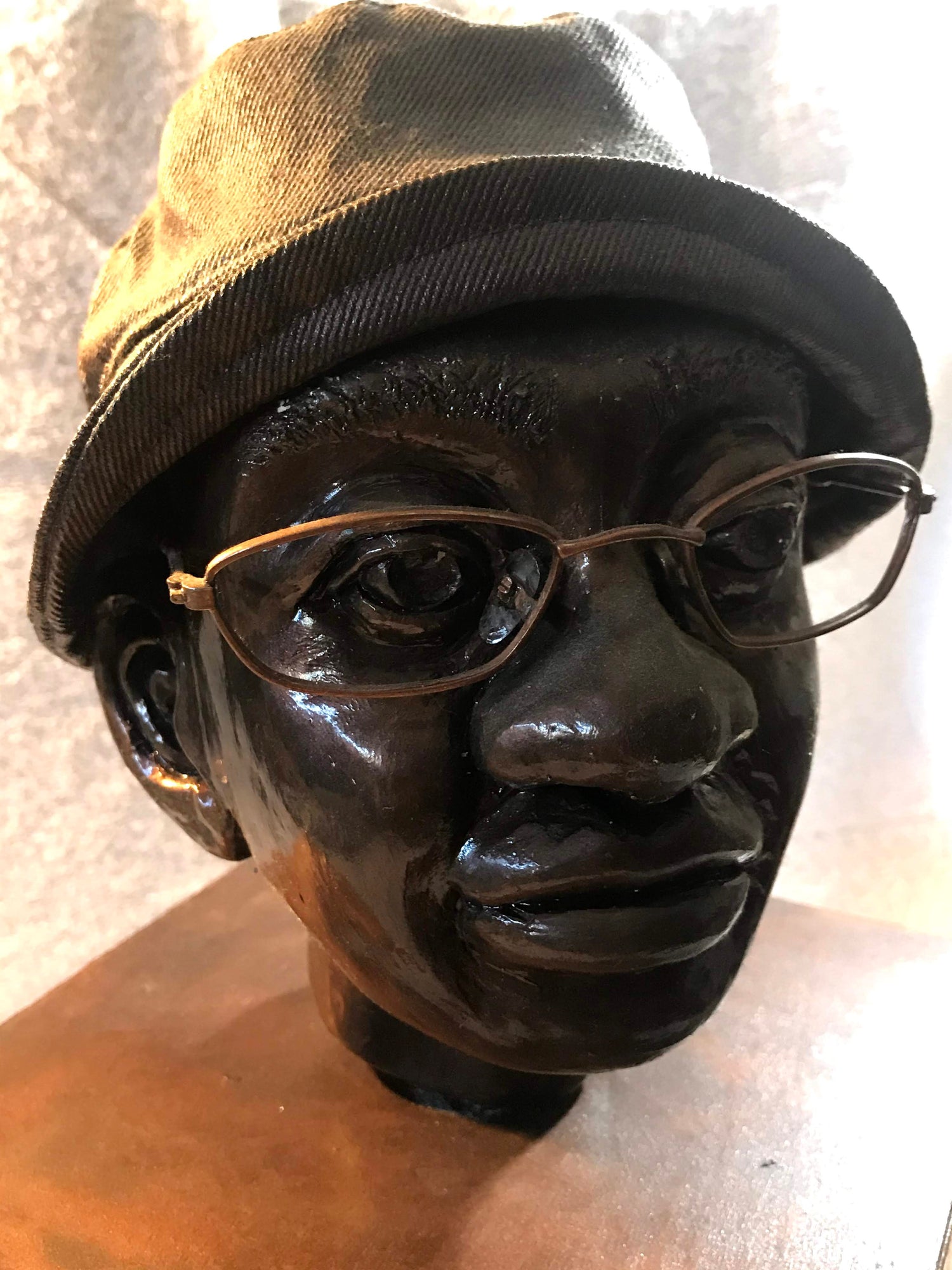 This most intimate form of sculpture is a representation of my client's head. This clay sculpture captures his personality with the infamous hat and glasses he always wears.